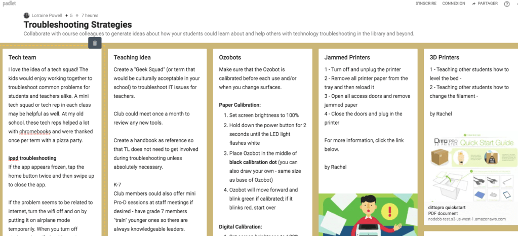 Before I watched the videos and participated in the collaborative padlet, my first troubleshooting strategy I thought of was « turn off the computer and turn it back on! ». I laughed at how basic this is and at how often I and others use this as our first line of troubleshooting.